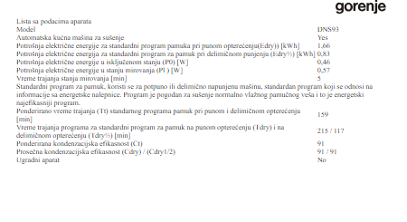 Mašina za sušenje veša Gorenje DNS93